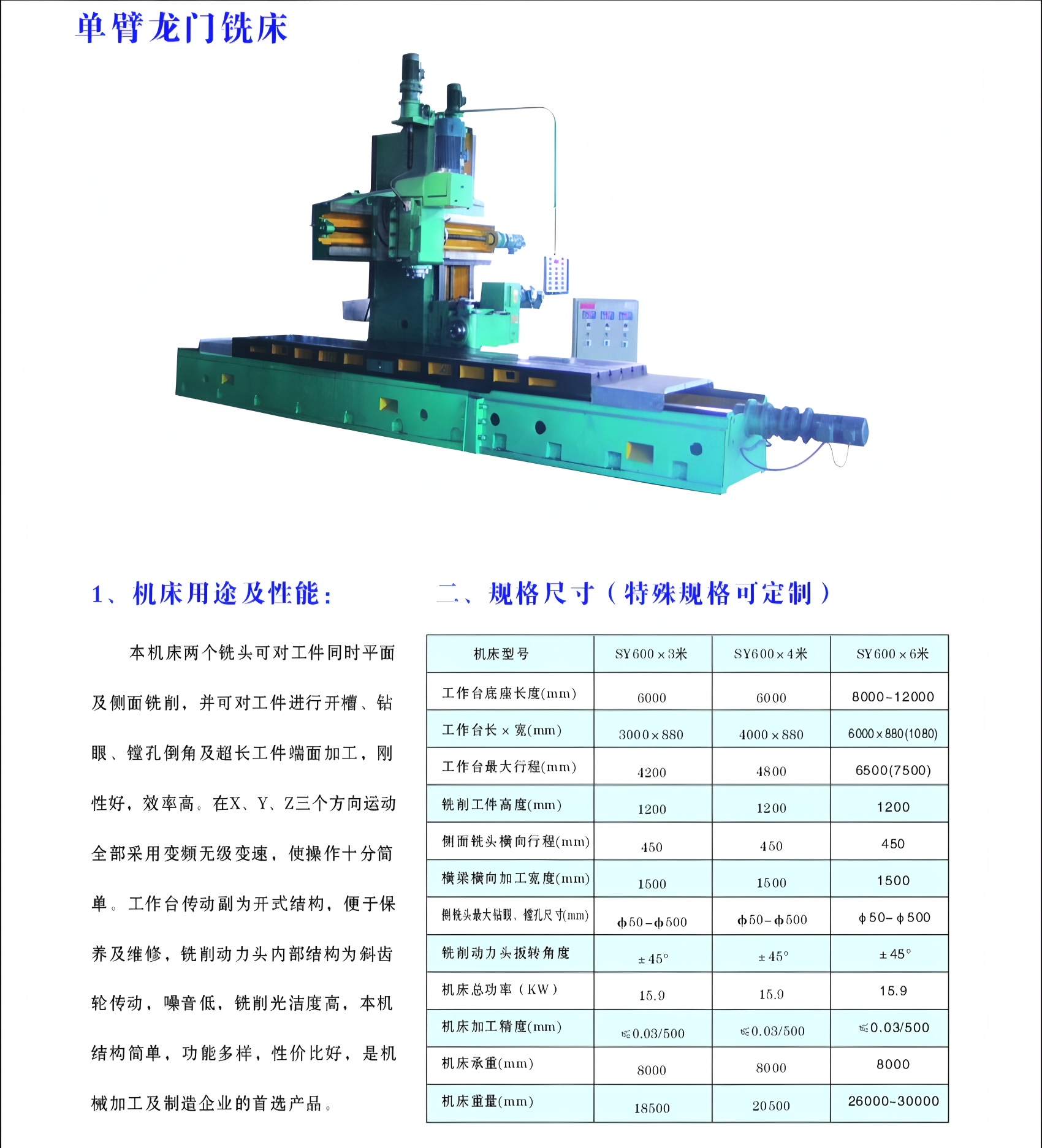 单臂龙门铣床